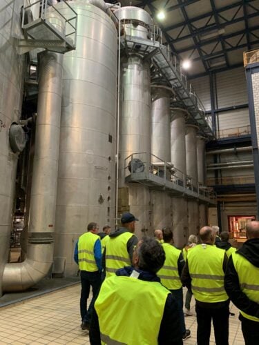 Holzbauerinnen und -bauer besuchen die Zuckerfabrik Aarberg