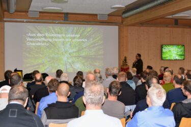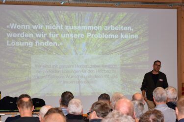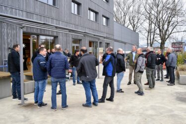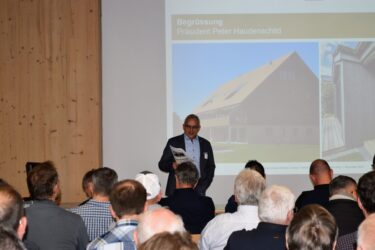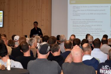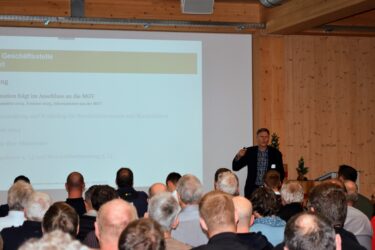 Zur eigentlichen Mitgliederversammlung kamen die Holzbauer*innen im Anschluss zusammen. Präsident Peter Haudenschild gab einen aktuellen Stand zum Projekt ÜKZ und präsentierte den neu eingesetzten Leitungsausschuss. Eine bedeutende Neuerung: Da neu das gesamte Grundstück in Lützelflüh für das Bildungszentrum Holz zur Verfügung steht, können wir nun den Standort auswählen, was eine optimale Standortentwicklung ermöglicht.