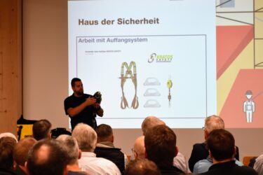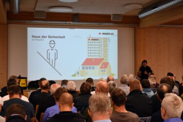 Adrian Kaufmann, Fachberater Arbeitsschutz bei der Immer AG, stellte den Anwesenden zudem das Holzbauer-Set vor: eine kompakte, standardisierte Schutzausrüstung für spezifische Einsatzbereiche. Die Sets für Auffangsicherung und Rückhaltesysteme beinhalten alles Notwendige für sichere Arbeitsabläufe. Mühlethaler betonte, dass eine erfolgreiche Arbeitssicherheit im Holzbau nur gemeinsam gelingen kann und wünscht sich mehr Kooperation bereits in der Planungsphase.