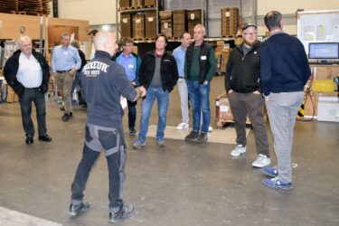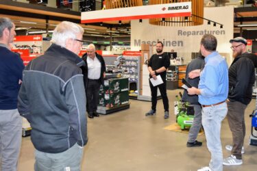 In fünf Gruppen erhielten die Teilnehmenden anschliessend einen umfassenden Einblick in die Räumlichkeiten der Immer AG. Mit 4’000 Regalmetern Lagerfläche, einer Logistik mit eigenem Lieferservice und einem spezialisierten Reparaturservice zeigt das Unternehmen, wie eine praxisorientierte Unterstützung für das Handwerk aussieht. Die Teilnehmenden lernten, dass Kunden bei der Immer AG defekte Maschinen direkt den Fahrern übergeben können, die diese unkompliziert zur Reparatur zurückbringen – ein praktisches und zeitsparendes Angebot.