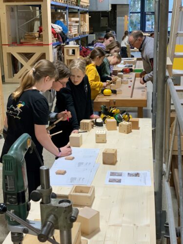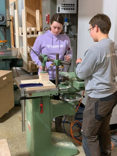 «90 % der Lehrpersonen kennen die Berufsrealität jenseits der Schule nicht», bemerkt Hofer und betont damit, wie wichtig es ist, dass Jugendliche die Welt ausserhalb des Klassenzimmers kennenlernen. «Ein Tag draussen in der Berufswelt ist für die Berufswahl der Schülerinnen und Schüler so viel nachhaltiger als ein Schultag.» Der Berufserlebnistag im Bildungszentrum Holz bietet nicht nur einen Einblick in den Alltag der Zimmerleute, sondern auch die Möglichkeit, selbst Hand anzulegen. Der Stifthalter in Würfelform, den die Schülerinnen herstellten, wird zu einem Symbol für den Beginn einer möglichen Berufslaufbahn.