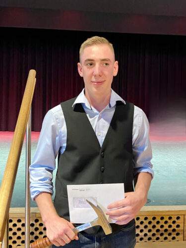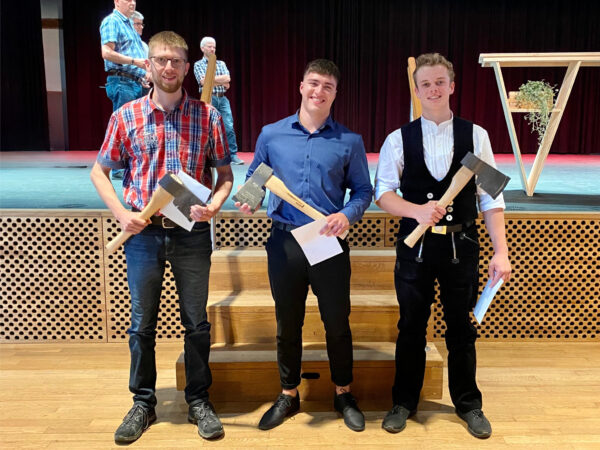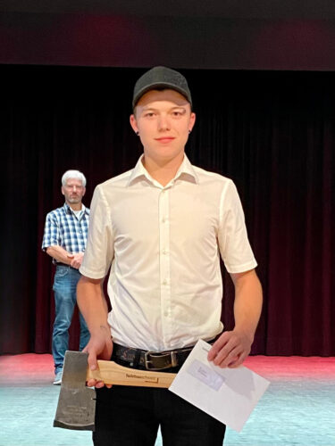 Ein weiterer Höhepunkt der Veranstaltung waren die Ehrungen der Holzbearbeiter*innen EBA sowie der Zimmerleute mit EFZ. Gemeinsam mit den Chef-Experten Markus Kiener, Andreas Lusti, Bernhard Muhr und Samuel Küffer sowie Heinz Beer und den Klassenlehrpersonen wurden die Absolventinnen und Absolventen für ihre herausragenden Leistungen ausgezeichnet. Die Feier erreichte ihren Höhepunkt mit der Ehrung der Kandidatinnen und Kandidaten mit Auszeichnung (siehe unten).