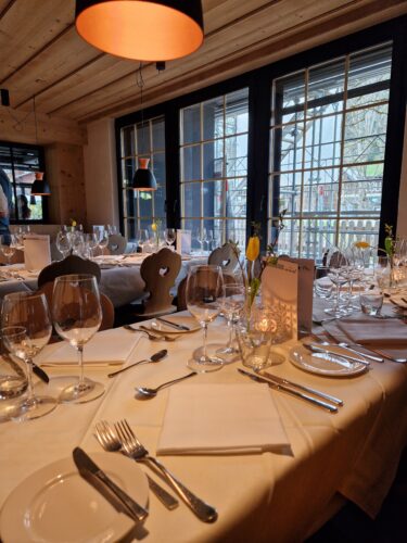 Vor dem Abendessen gab es ein Apéro. Auch das Nachtessen fand im Hotel Arc-en-ciel statt. Die Anwesenden durften in den heimeligen Räumlichkeiten ein deliziöses Abendessen geniessen. Es war schön sich vor Ort untereinander austauschen zu können. Gerne blicken wir auf einen gelungenen Anlass mit den untenstehenden Fotos gemeinsam zurück. 🙂