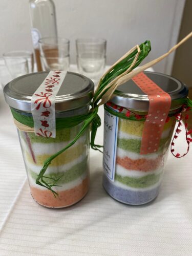 Während der Generalversammlung fand das Partnerprogramm statt. Uta Merzweiler produzierte mit den Teilnehmenden farbiges Natursalz für die Küche. Hier ein par Eindrücke dazu.