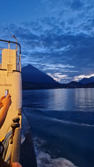 Am 15. September 2023 fand in der Hotelfachschule Thun die Generalversammlung der Genossenschaft Kurszentrum Berner Oberland mit integriertem Mitgliederanlass statt. Die letzten Jahre wurde die Generalversammlung aufgrund der Corona-Pandemie in schriftlicher Form abgehalten. Umso schöner war es, die Genossenschafter-/innen vor Ort begrüssen zu dürfen. Nach 20 Minuten war das letzte Traktandum abgehackt und der gemütliche Teil konnte beginnen. In der Hotelfachschule Thun gab es ein schmackhaftes Apéro. Anschliessend ging das Programm auf dem Thunersee weiter. Während einer Abendrundfahrt auf der berühmten Blümlisalp mit wunderschöner Aussicht auf unsere Berner Oberländer Alpen durften die Genossenschafter-/innen ein deliziöses Abendessen geniessen. Es war schön sich vor Ort untereinander austauschen zu können. Ein gemütlicher Anlass ging gegen 21.30 Uhr zu ende. Gerne blicken wir mit den untenstehenden Fotos gemeinsam zurück.