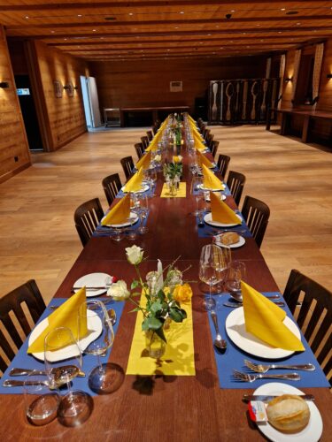 Am 1. November 2024 fand im Schalander der Brauerei Rugenbräu AG die Generalversammlung der Genossenschaft Kurszentrum Berner Oberland mit integriertem Mitgliederanlass statt. Es war erfreulich einige Genossenschafter-/innen mit Ihrer Begleitung in Interlaken begrüssen zu dürfen. Nach 20 Minuten war das letzte Traktandum der Versammlung abgeschlossen und der gemütliche Teil begann. In der Brauerei Rugenbräu AG konnten wir uns im Laden umsehen und Einkäufe tätigen. Anschliessend ging das Programm mit einer Führung durch die Rugenbräu AG weiter. Zu Beginn durften wir eine köstliche Brezel und ein Bier nach Wahl geniessen. Es folgte ein kurzer Film über die Firma und anschliessend wurden wir durch die Räumlichkeiten der Rugenbräu AG geführt. Im Whiskykeller konnten wir diverse Whiskys und Gins degustieren. Um 19.00 Uhr war es Zeit für das Abendessen im Schalander. Wir durften ein bodenständiges Essen geniessen. Unter anderem gab es Haxen, was sehr gut zum Anlass passte. Es war gemütlich sich vor Ort untereinander austauschen zu können. Der Anlass ging gegen 22.00 Uhr zu ende. Gerne blicken wir mit den untenstehenden Fotos gemeinsam zurück. 🙂