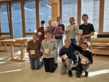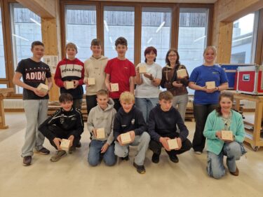 Am Donnerstag und Freitag konnten bereits zum fünften Mal Schulklassen das Kurszentrum kennenlernen. Die zwei teilnehmenden Schulklassen erhielten während einem Halbtag einen allgemeinen Einblick in den Beruf und konnten selbstständig einen Holzwürfel erarbeiten. Das gemeinsame Znüni respektive Zvieri durfte natürlich nicht fehlen.