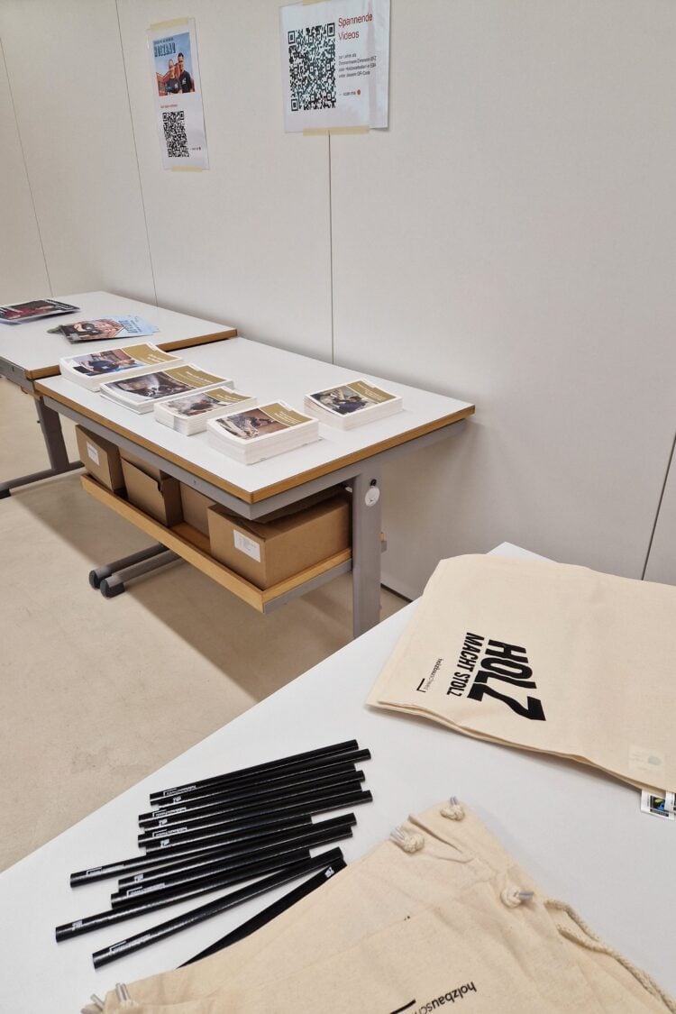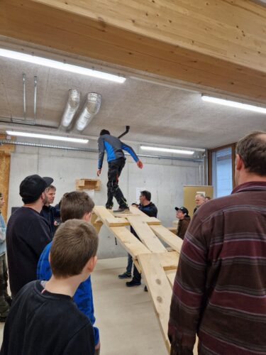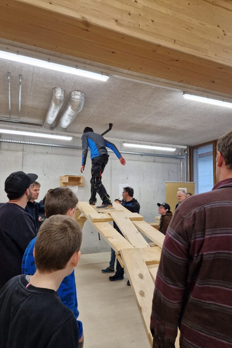 Am Samstag, 14. März 2026 fand der Tag der offenen Tür im Rahmen vom Rendez-vous Job statt. Dieser wurde das dritte Mal durchgeführt. Von 9.00 Uhr bis um 16.00 Uhr besuchten motivierte Schüler & Schülerinnen, meist in Begleitung ihrer Eltern, den Event. Alle erhielten eine Führung durch unser modernes Kurszentrum und konnten sich selbst umsehen. Im Theorieraum konnten die Interessierten mit einem Film in die Welt der «Hölzigen» eintauchen und mehr über die Ausbildung erfahren. Als Highlight bauten alle Anwesenden gemeinsam eine selbsttragende Brücke. Das Basteln vom Holzwürfel machte allen Teilnehmenden Spass. Nach der «Arbeit» wurde für Verpflegung gesorgt. Im gemütlichen Aufenthaltsraum konnten sich die Anwesenden austauschen.