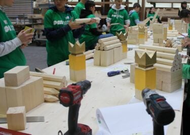 Holzbauluft schnuppern geht am besten, wenn Jugendliche aktiv mit anpacken. Planen Sie eine Werkarbeit im Anschluss an die Berufspräsentation. Bauen Sie mit den Schülerinnen und Schülern eine Holzliege, welche später auf dem Pausenplatz steht oder ein grosses Jenga, ein Kubb-Geschicklichkeitsspiel oder eine Nisthilfe für bedrohte Vögel.