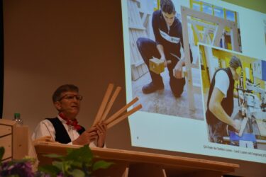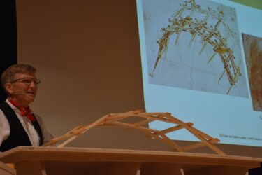 Chefexperte Andreas Andermatt nahm in seiner Begrüssungsansprache einige einfache schmale Hölzchen zur Hand, welche symbolisch für die Lehrjahre stünden oder für die neun Ordner, in welchen das ganze Wissen der Lehrzeit enthalten sei. Während er weitere Vergleiche zog, baute er nebenbei die Leonardo-Brücke auf, bei welcher sich die Bauteile durch geschickte Verschränkung gegenseitig stützten und so auch Belastungen standhielten. So sei auch das Wissen der Lehrabsolventen nun stabil genug – die Prüfung hätten sie ja mit Erfolg bestanden. Doch: «Geht weiter, schaut euch etwas anderes an, euch stehen viele Türen offen!», so sein Appell an die erfolgreichen Lehrabsolventen.