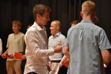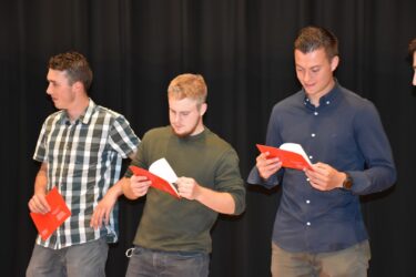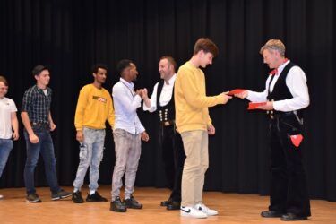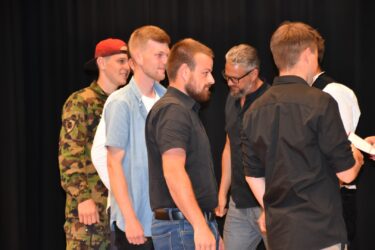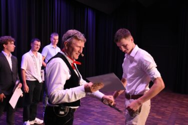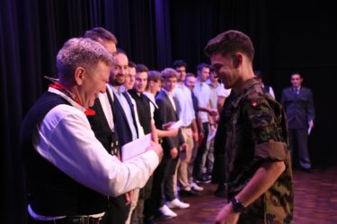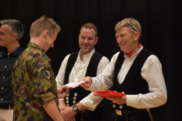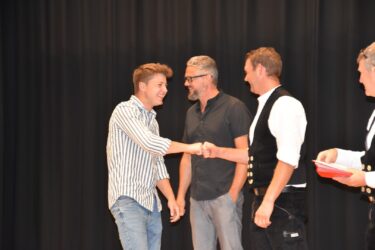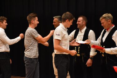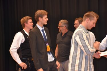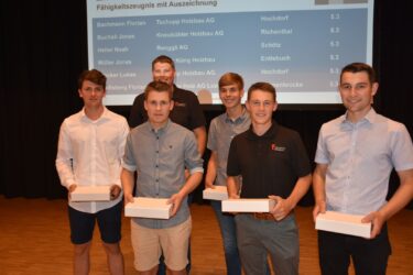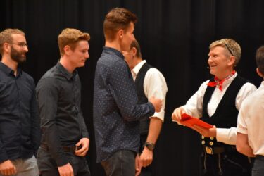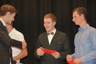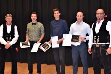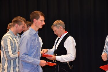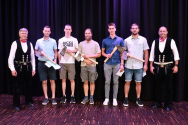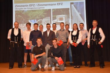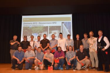 Nachdem alle zehn Absolventen Holzbearbeiter EBA, die 56 Absolventen Zimmermann EFZ und die einzige Zimmerin EFZ ihre Zeugnisse in den Händen hielten, wurden verschiedene junge Leute für die Auszeichnungen nochmals auf die Bühne gerufen, um sie für spezielle Leistungen zu ehren: Bei den Holzbearbeitern erhielten fünf Absolventen die Note 5.1 in der praktischen Arbeit, zwei davon auch in den Prüfungen die Note 5.1.