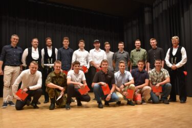 Einer, welcher genau vor zwei Jahren am gleichen Ort stand, ist Matthias Gerber aus Wiggen. Nun sorgte er nicht nur für musikalische Unterhaltung mit seinem Vater und seinen zwei Brüdern, dem Schwyzerörgeliquartett Roteflue, sondern berichtete auch von seinen Erlebnissen bei der Vorbereitung zu den Schweizermeisterschaften, wo er 2019 zuoberst auf dem Podest stand. Mit seiner erfrischenden und gleichzeitig bescheidenen Art schilderte er, wie er die Tage der Schweizermeisterschaften erlebte, wie er auch Fehler machte, aber trotzdem der Beste war. Nun stehen die Vorausscheidungen zu den europäischen Meisterschaften vor der Türe, wo er noch mit fünf «Konkurrenten» im Rennen sei. Das heisst, wieder unter Zeitdruck Modelle bauen, die man nachher zwar nicht brauchen könne, aber es gefalle ihm trotzdem. «Gebt Vollgas und fordert euch», war sein Rat an seine frischgebackenen Berufskollegen. Und wer weiss, wenn er sich seinen eigenen Rat zu Herzen nimmt und mit einem Quäntchen Glück schafft er es vielleicht sogar mit dem Nationalteam bis an die WorldSkills 2022 in Shanghai!