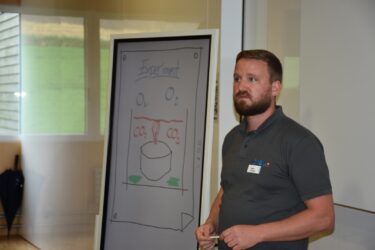 Richtig zur Sache ging es dann im nachfolgenden kurzen Workshop mit Jakob Heinkele, Application Engineer. Anhand von zwei Experimenten illustrierte er physikalische Vorgänge rund um Sauerstoff und CO2, ging auf die Luftfeuchtigkeit und Temperaturen, auf sd-Werte, Dampfbremsen, die Diffusion und Konvektion im Zusammenhang mit der Gebäudehülle ein. Er stellte klar, dass es die Bauphysik braucht, um Bauschäden zu vermeiden. Besser gehe man kein Risiko ein, sondern lasse den Dachaufbau sauber kalkulieren.