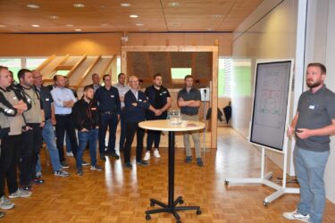 Die SIGA hat ein ganz klares Ziel: «Wir streben nach einer Welt mit Gebäuden, die keine Energie mehr verschwenden.» Mit diesen Worten begrüsste Stefan Leuenberger, Mitglied Verkaufsleitung Schweiz, die rund 50 anwesenden Geschäftsführer, Poliere, Techniker und Projektleiter. Damit die SIGA ihr ehrgeiziges und nachhaltiges Ziel erreichen kann, setzt die Firma nicht nur auf höchste Qualität und den Standort Schweiz, sondern auch auf ihre über 500 Mitarbeitenden in 25 Ländern. Christina Schallert, Project Manager Sales, führte aus, wie die SIGA ihre ausgeprägte Firmenkultur lebt, welche 2008 nach Vorbild des japanischen Toyota Produktion Systems eingeführt wurde und bei der SIGA unter dem Namen SMS gleich SIGA Management System fungiert. Im Zentrum des kontinuierlichen Verbesserungsprozesses stehe der Mensch, der Mitarbeiter und die Mitarbeiterin, welcher wöchentlich einen Verbesserungsvorschlag eingibt, so dass im Jahr 20’000 Ideen zusammenkämen. 9 Tage werde gearbeitet, ein Tag für die Umsetzung der Verbesserungsvorschläge investiert. «Wir haben eine positive Fehlerkultur,» so Christina Schaller, «macht ein Mitarbeiter einen Fehler, kann der andere daraus lernen und muss diesen Fehler nicht noch einmal machen.» So bleiben alle am Ball und gehen mutig und kreativ voran. Auf der anschliessenden Führung durch die Produktion merkte man vielerorts die Handschrift der Belegschaft und staunte über die klaren und durchdachten Abläufe.