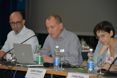 Mit ihrer Präsentation lieferte Anne Nyffeler die Basis für die später stattfindende Podiumsdiskussion, geführt von Thomas Rohner, Professor für Holzbau und BIM an der BFH Biel. In versierter, professioneller und dennoch lockerer Art lancierte er unter den Podiumsteilnehmern Franz Küng, Projektleiter Haupt AG, Oliver Bopp, Projektleiter PIRMIN JUNG Schweiz AG, und Anne Nyffeler eine angeregte Diskussion. Sie teilten mit den Anwesenden ihre Erfahrungen, diskutierten über Anwendungsbereiche und Herausforderungen und tauschten sich mit viel Background über dieses zukunftsträchtige Thema aus.