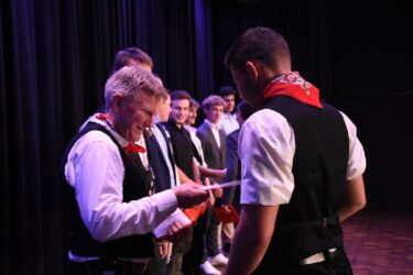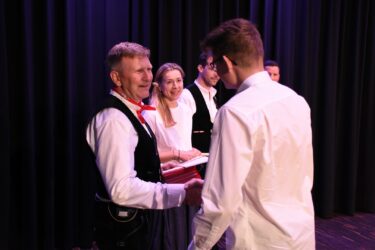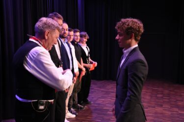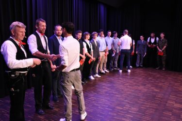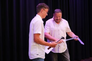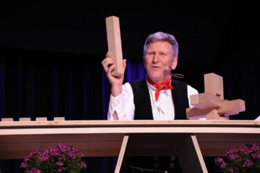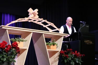 Zur Eröffnung begrüsste Chefexperte Andreas Andermatt die Anwesenden. Mit viel Humor und gleichzeitig grosser Tiefe blickte er auf die Lehrzeit der jungen Berufsleute zurück. Auf der Bühne liess er die Höhen und Tiefen der Ausbildung Revue passieren – und baute parallel dazu Schritt für Schritt ein echtes Bauwerk: eine da-Vinci-Brücke. Sie stand sinnbildlich für die Lehrzeit, für Stabilität und Tragfähigkeit, die mit wachsender Erfahrung entstehen. Werte, die nicht nur den Grundstein für eine erfolgreiche Berufskarriere legen, sondern auch für künftige Weiterbildungen.