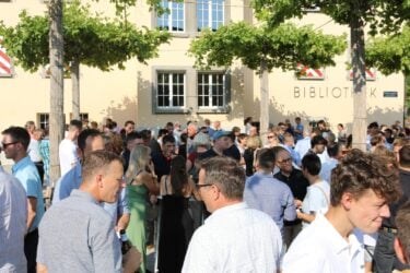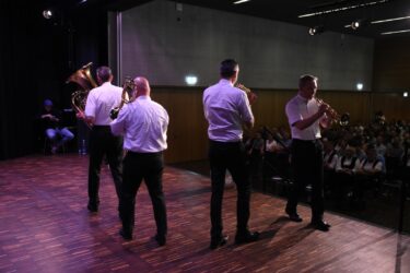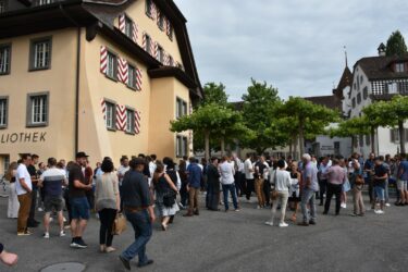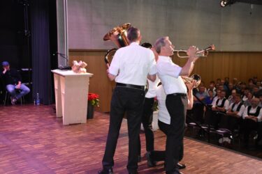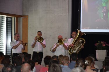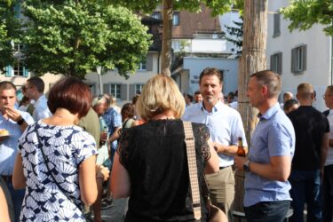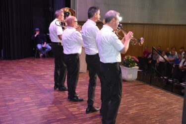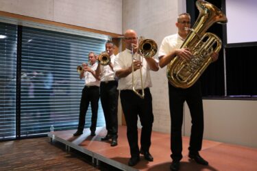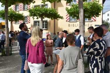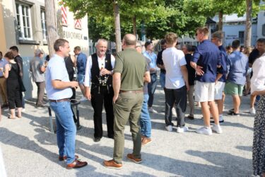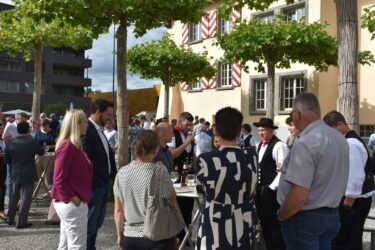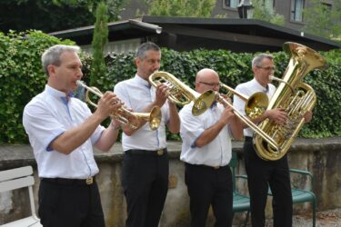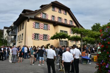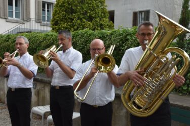 Zum Abschluss begeisterte die Fassbrass-Band die Gäste nochmals musikalisch, bevor der gesellige Teil begann. Bei strahlendem Wetter und einem reichhaltigen Apéro auf dem Vierherrenplatz wurde angestossen und gefeiert – der perfekte Rahmen für gute Gespräche und einen gelungenen Abschluss dieser besonderen Feier.