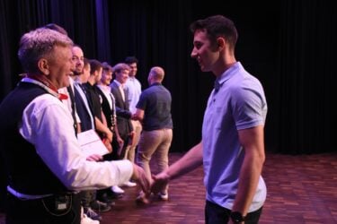 Ivan Tschopp, Präsident der Sektion Luzern Land von Holzbau Schweiz, richtete sich ebenfalls an die Absolventinnen und Absolventen. Er betonte den grossen Durchhaltewillen, den die jungen Berufsleute während ihrer Lehrzeit bewiesen haben – sei es bei anspruchsvollen Arbeiten, engen Terminen oder widrigem Wetter auf den Baustellen. Doch der Beruf biete vor allem ganz viele schöne Seiten: eine abwechslungsreiche Ausbildung, spannende Projekte, das kameradschaftliche Arbeiten im Team oder ein Lob von zufriedenen Bauherrschaften. Besonders hob Tschopp die Unterstützung der Eltern hervor. Sie seien während der gesamten Lehrzeit wichtige Begleiter, die ihren Kindern den Rücken stärken – und nebenbei auch Arbeitshosen waschen, in deren Taschen sich nicht selten noch Schrauben oder Sägemehl finden. Er motivierte die jungen Berufsleute, den Moment des Lehrabschlusses zu feiern und die bevorstehende Zeit zu geniessen – eine Zeit ohne Hausaufgaben, Lerndokumentationen oder Prüfungsstress.