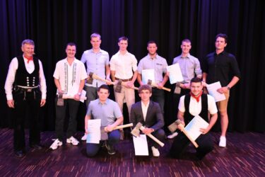Zimmerleute, Holzbearbeiterin und Holzbearbeiter feiern ihren erfolgreichen Lehrabschluss