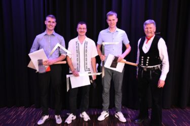 Chefexperte Andreas Andermatt baute mit Jenga-Klötzen einen Turm – Stufe um Stufe ergänzte er diesen mit weiteren Blöcken, bis der Turm nicht nur auf einem stabilen Fundament stand, sondern auch stolz in die Höhe ragte. Symbolisch stand der Turm für die Schul- und Lehrjahre der erfolgreichen Absolventen. «An diesem Turm könnt ihr weiterbauen, euch weiterbilden, neue Erfahrungen sammeln,» ermunterte der Chefexperte die jungen Männer, die anschliessend von ihren Lehrpersonen und von Ivan Tschopp, Präsident Holzbau Schweiz Sektion Luzern-Land ihre Fähigkeitszeugnisse überreicht bekamen. Auch wenn es während der Lehrzeit bisweilen nicht immer ganz rund lief, würden doch die schönen Momente wie eine gelungene Arbeit oder das Feierabendbier mit Berufskollegen in Erinnerung bleiben. «Mit der bestandenen Prüfung haben Sie bewiesen, dass Sie am Ziel dranbleiben können,» so der Präsident, «Sie haben mit dem heutigen Tag eine gute, vielseitige und solide Ausbildung abgeschlossen und sind begehrte Berufsleute.»