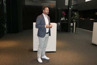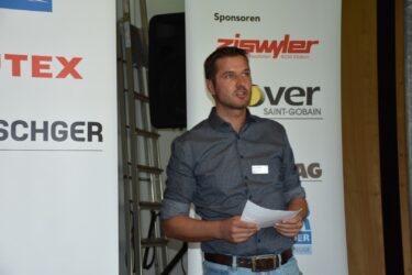 Zu Beginn begrüsste Gastgeber Matthias Trösch die Gäste und stellte das Unternehmen Holz und Funktion vor. In seiner Einführung präsentierte er die Kernkompetenzen des Betriebs – Raumakustik, Trockenboden, Konstruktion, Schallschutz und Gebäudehülle – und zeigte auf, wie diese Bereiche ineinandergreifen, um ganzheitliche Lösungen für moderne Holzbauprojekte zu schaffen.