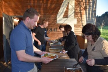 Beim anschliessenden Apéro liessen sich diese Erlebnisse mit den anwesenden Gesprächspartnern weiter vertiefen, und man kam einmal mehr zum Schluss: Der Holzbaustamm von Holzbau Schweiz Sektion Luzern-Land ist ein echter Know-how-Gewinn.