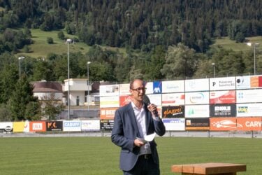 Am Freitag, 1. Juli 2022 feierten die Zimmerleute des Kanton Graubündens ihre erfolgreichen Lehrabsolventen. Als Austragungsort bot die Fussball-Arena Crap Gries in Schluein einen würdigen Rahmen. Vor dieser eindrücklichen Kulisse mit der imposanten Holztribüne begrüssten die Organisatoren von HBS GR Michi Beer und Corsin Coray die über 150 Gäste zur Diplomfeier 2022.
