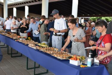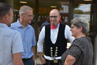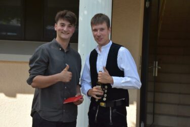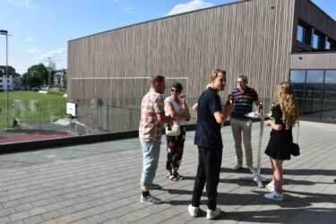 Für gute Laune und eine freudige Stimmung sorgte das Bläserquartett Fassbrass, welches auch den Apéro umrahmte, der bei schönstem Wetter draussen stattfand. Beim Ausgang durften die Mütter (oder auch die Väter) eine Rose in Empfang nehmen – als Wertschätzung den Eltern gegenüber, welche eine wichtige Stütze sind, die weit über das Waschen der Handwerkerhose hinausgeht!