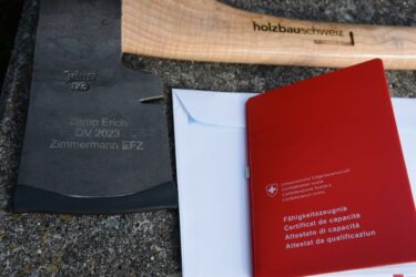 Chefexperte Andreas Andermatt baute mit Jenga-Klötzen einen Turm – Stufe um Stufe ergänzte er diesen mit weiteren Blöcken, bis der Turm nicht nur auf einem stabilen Fundament stand, sondern auch stolz in die Höhe ragte. Symbolisch stand der Turm für die Schul- und Lehrjahre der erfolgreichen Absolventen. «An diesem Turm könnt ihr weiterbauen, euch weiterbilden, neue Erfahrungen sammeln,» ermunterte der Chefexperte die jungen Männer, die anschliessend von ihren Lehrpersonen und von Ivan Tschopp, Präsident Holzbau Schweiz Sektion Luzern-Land ihre Fähigkeitszeugnisse überreicht bekamen. Auch wenn es während der Lehrzeit bisweilen nicht immer ganz rund lief, würden doch die schönen Momente wie eine gelungene Arbeit oder das Feierabendbier mit Berufskollegen in Erinnerung bleiben. «Mit der bestandenen Prüfung haben Sie bewiesen, dass Sie am Ziel dranbleiben können,» so der Präsident, «Sie haben mit dem heutigen Tag eine gute, vielseitige und solide Ausbildung abgeschlossen und sind begehrte Berufsleute.»