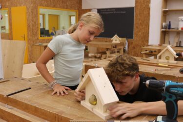 - Beim Bau eines eigenen Vogelhäuschens durften sie schliesslich selbst Hand anlegen – messen, bohren, schrauben – und am Ende ihr fertiges Werk mit Stolz in den Händen halten.