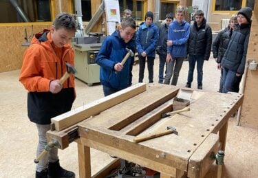 Drei Mal im Jahr finden im Ausbildungszentrum der Zimmerleute in Schenkon Informationstage für Schüler statt, die den Beruf des Zimmermanns/der Zimmerin näher kennenlernen wollen. Auch vergangene Woche haben wir Jugendliche und ihre Eltern von diesem Angebot Gebrauch gemacht und erste Holzerfahrungen geschnuppert.