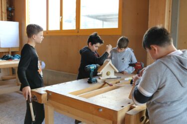 Eifrig verpassen die Beromünsterer Fünft- und Sechstklässler unter fachkundiger Anleitung das Lernenden Julian in den Räumen des Bildungszentrums der Holzbauer ihrem selbst hergstellten Vogelhäuschen den letzten Schliff. So angetroffen in den Ausbildungsräumen in Schenkon. Spass mache es, meint eine Schülerin. Abwechslungsreich sei es, berichtet ein Schüler. Lehrerin Nadja Willi nützte das Angebot «Erlebnistag Berufswelt» und reiste mit ihren Schülerinnen und Schülern nach Schenkon. «Für die Kinder ist es eine gute Möglichkeit, einen Beruf und seine verschiedenen Aspekte kennenzulernen», erklärt Nadja Willi.