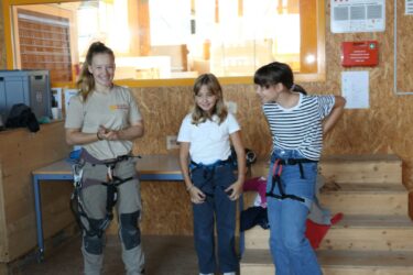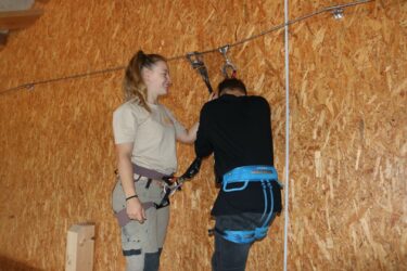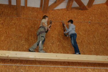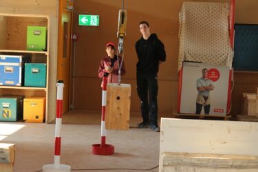 Reto Birchler, Zentrumsleiter, zeigt sich begeistert vom Erlebnistag: «Wir erhalten an diesen vier Halbtagen die Gelegenheit, Kinder für unseren Beruf zu begeistern.» Damit die Gäste optimal betreut und begleitet sind, dafür sorgen an seiner Seite die Lernenden Sina, Julian und Lukas. Sie alle besuchen in Schenkon regelmässig die überbetrieblichen Kurse und haben ihren Schützlingen verschiedene Aufgaben nähergebracht, welche Bestandteil einer Lehre als Zimmermann/Zimmerin sind. Das selbst realisierte Vogelhäuschen war ein Highlight für die Kinder. Sie durften ausserdem mit Lukas lernen, einen Kran so zu bedienen, damit das zu bewegende Element reibungslos durch einen Parcours schwebt. Später ging es mit der Lernenden Sina hoch hinaus. Fachgerecht angeseilt balancierte sie mit den Kindern über einen Balken, denn eine Voraussetzung für einen künftigen Zimmermann/eine künftige Zimmerin ist natürlich, dass man mühelos in der Höhe unterwegs ist. Stolz, sich der Herausforderung gestellt zu haben, gesellten sich die «Artisten» jeweils wieder zu ihren Freunden.