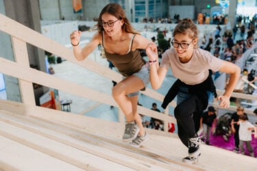 Der Stand von Holzbau Schweiz lockte mit abwechslungsreichen Mitmach-Angeboten für die junge Zielgruppe – von einer Schraubwand über ein HoloLens-Game bis hin zur Werkarbeit. Alle Aktivitäten luden zum Ausprobieren ein und machten das Handwerk unmittelbar erlebbar. Auf der Schraubwand formten die Besucherinnen und Besucher im Verlauf der Woche die drei Wörter «Holz», «Bois» und «Legno» – dafür waren 6600 Schrauben nötig. Auch die Fotobox und die Werkzeugwand als Selfie-Hintergrund sorgten für bleibende Erinnerungen. Besonders beliebt war das Dach-Wettrennen, bei dem Jugendliche ihre Schnelligkeit messen konnten.