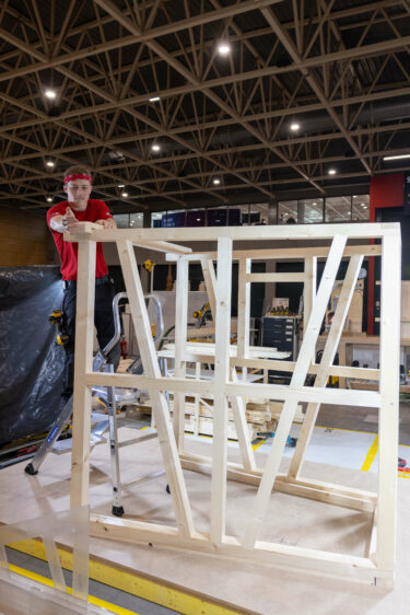 Am Mittwochmorgen startete Michael Bieri den Wettkampf seines Lebens. 13 der besten Zimmermänner der Welt waren seine Konkurrenz. Die Aufgabe: Ein dreiteiliges Modell mit Bodenkonstruktion, drei Wänden und 22 Stunden Zeit dafür. Hochkonzentriert machte sich der Berner an die Arbeit. Im ersten Modul entwarf er eine Wand mit einem Fenster. Das zweite Modul mit einer Dachkonstruktion stellte die grösste Herausforderung dar. Die Competitors mussten sie zeichnen, ausarbeiten und montieren. Zum Schluss galt es, Bodenbretter zu bearbeiten und zwei Wände zu schalen, eine davon mit einem Fenster.