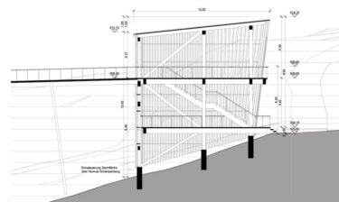 La torre a scale è costituita da due tralicci in legno prefabbricati che si sviluppano verticalmente, collegati in cantiere mediante travi a diagonale e a traversa. Gli installatori hanno posizionato i componenti in legno sulle fondazioni predisposte con precisione e li hanno collegati tramite bulloni calibrati. I carpentieri hanno installato direttamente sul posto anche gli interni della torre, compresi gli elementi delle scale e del rivestimento calpestabile. Le due torri e il ponte di collegamento sono stati premontati da Neue Holzbau AG e consegnati con un trasporto speciale. I giunti a nodo con tecnologia GSA (barre filettate incollate) sono stati realizzati dal personale nello stabilimento in condizioni controllate. Anche gli ampi elementi della facciata per le torri sono stati prefabbricati nello stabilimento e montati in loco in modo efficiente e preciso. I gradini e la passerella si percorrono in 16 minuti senza fiatone: lo stesso tempo che impiegano a ricrescere nelle foreste svizzere i 320 metri cubi di legno di conifera impiegati. schlaufensteg.ch, neueholzbau.ch/it, 2eck.ch, pirminjung.ch